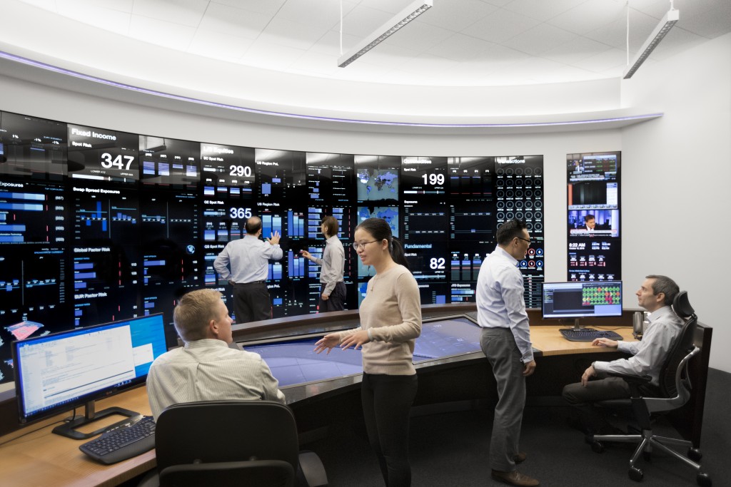 Dormant Capital Risk Management Center provides a comprehensive view of the various investment portfolios and how they fit within pre-established guidelines. Built in 2014, its front-end consists of a 27’ by 8’ interactive touchscreen designed to visualize data in ways that allow for rapid comprehension. Its back-end systems, which connect to every Dormant Capital office worldwide, continuously run a wide range of operational readiness, risk, and stress test monitors.